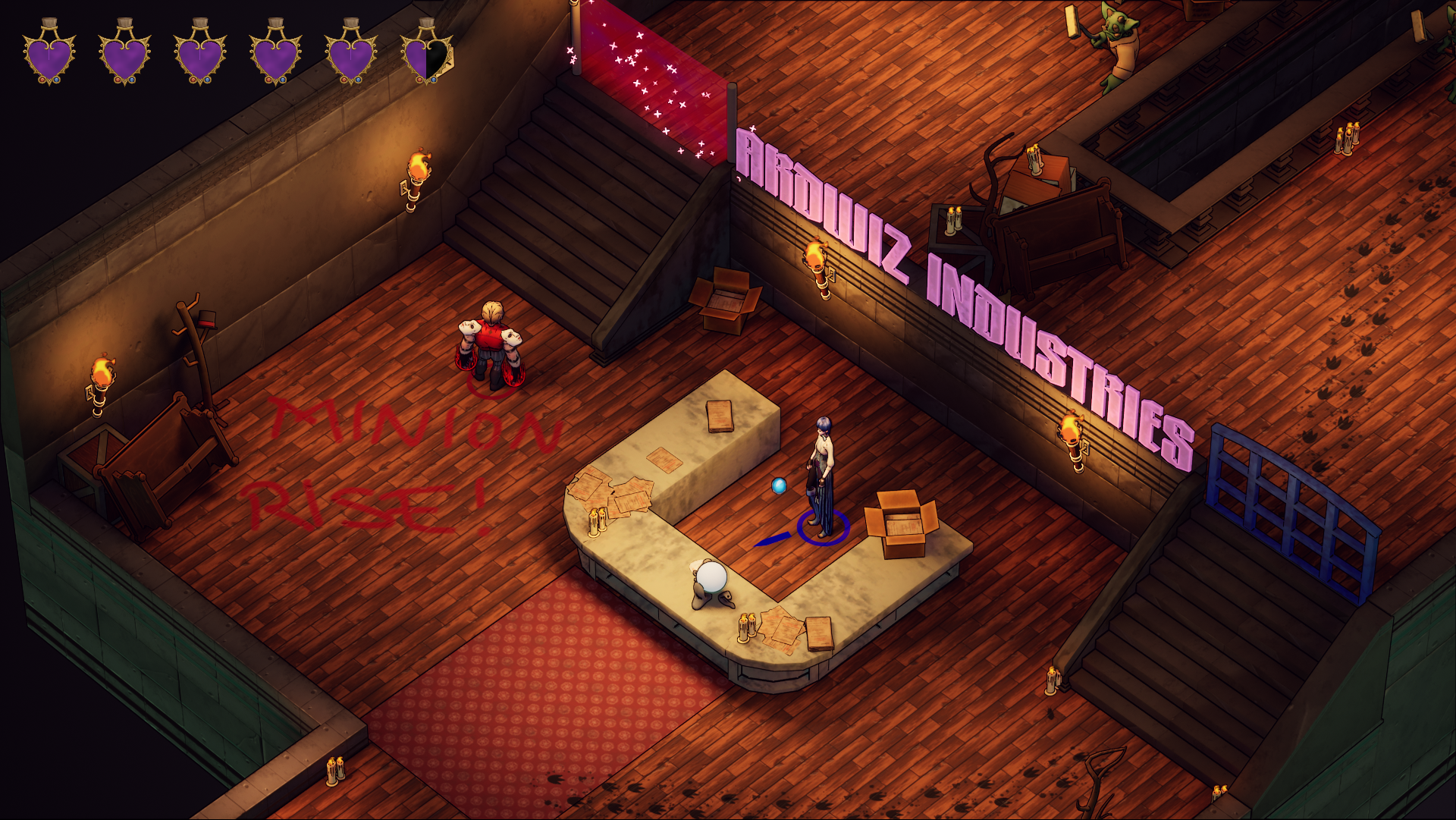 An adventure game featuring both combat and puzzles for two players, where you control two mages working together to fight their way through the newly-formed Minion Union.