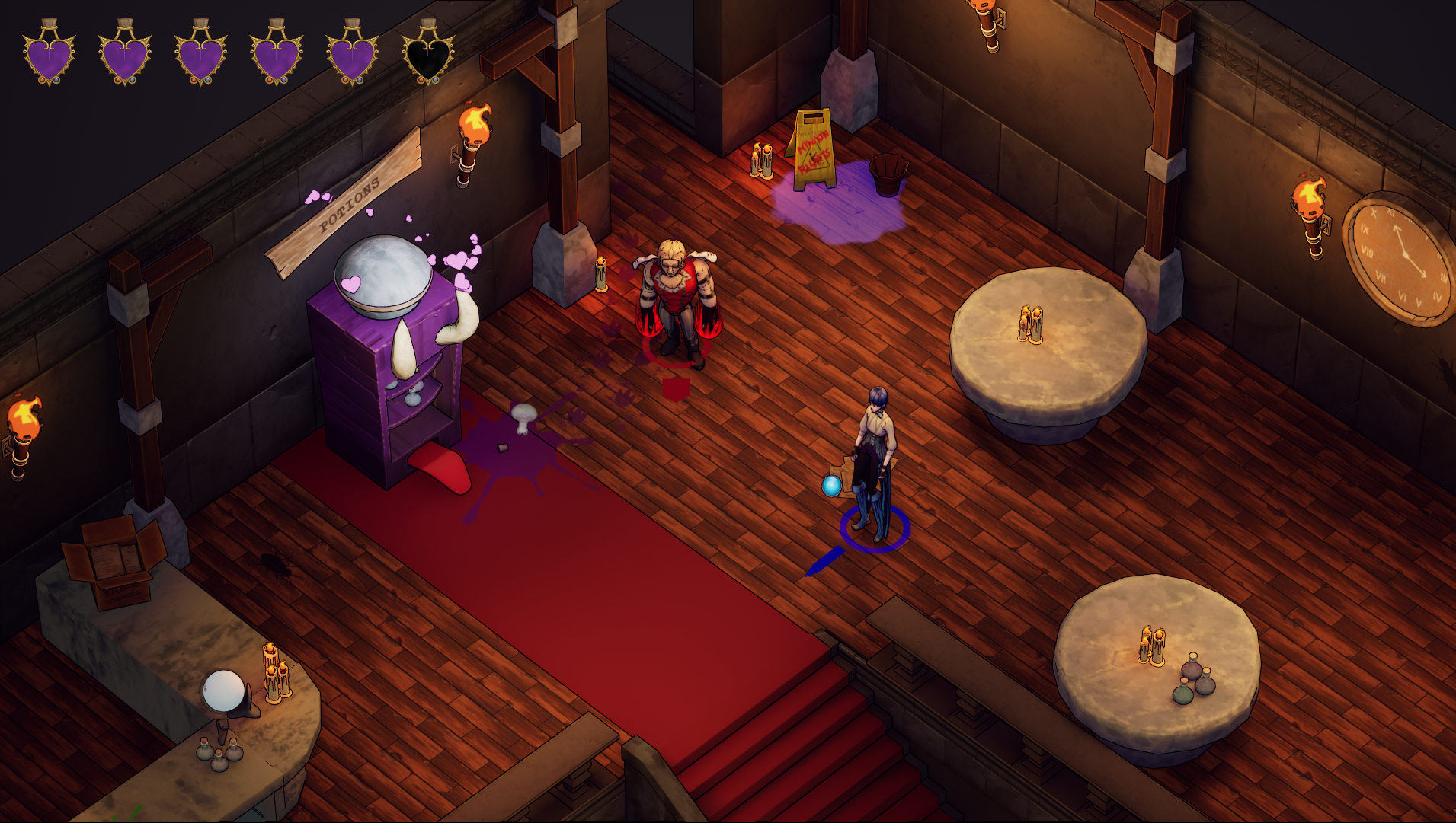 One of the key dynamics I wanted to enforce was for the players to remain together and cooperate. The first consideration was a dynamic split camera, but having a clear line of sight of your teammate was very important so it was scrapped.